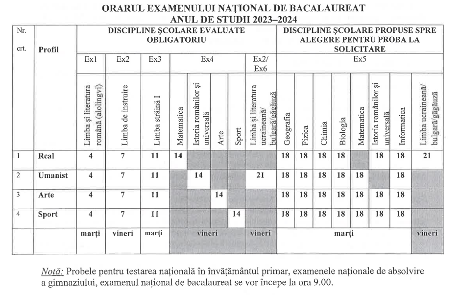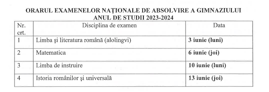 Orarul examenelor, sesiunea 2024